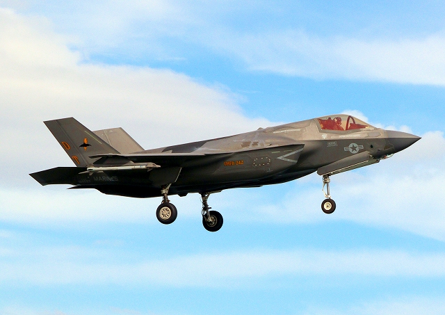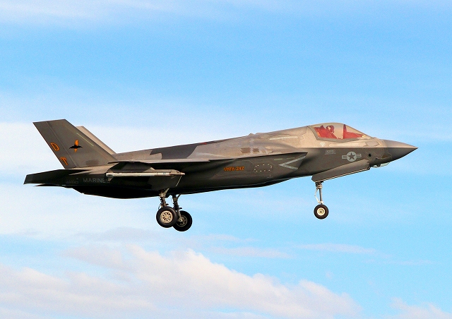米海兵隊 F-35B ライトニングⅡ 戦闘機(岩国基地)、DT、25番機が着陸