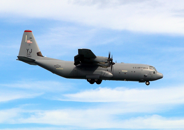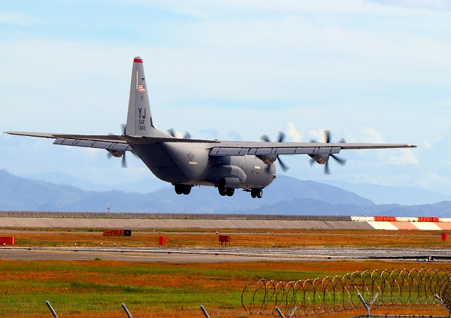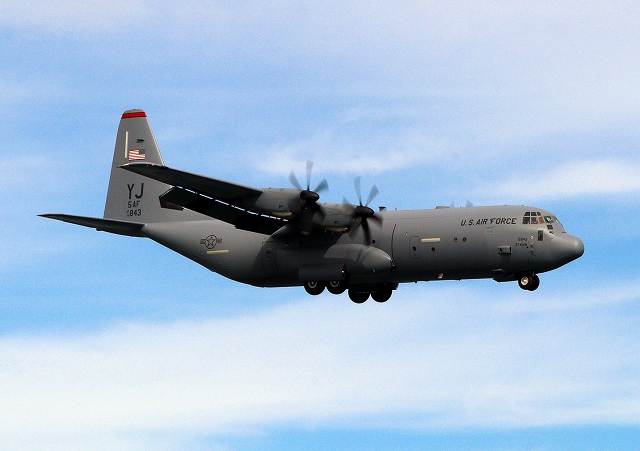 米空軍 C-130J 戦術輸送機 ハーキュリーズ(横田基地)、YJ、840番機が着陸 |