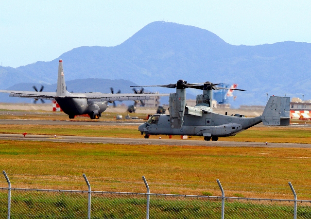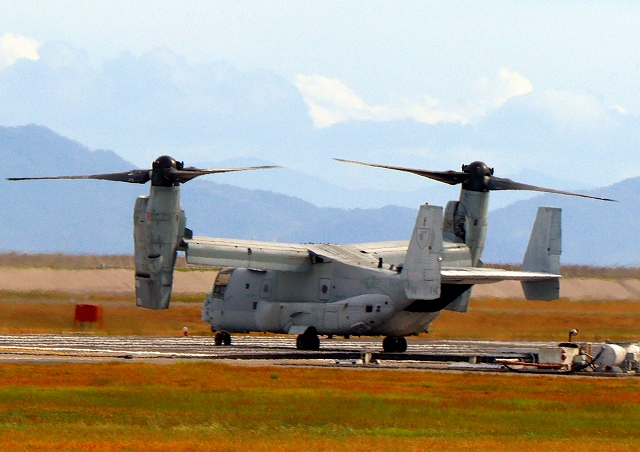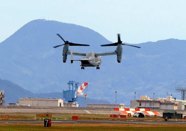 米海兵隊 MV-22B オスプレイ、YW、14番機が離陸 |