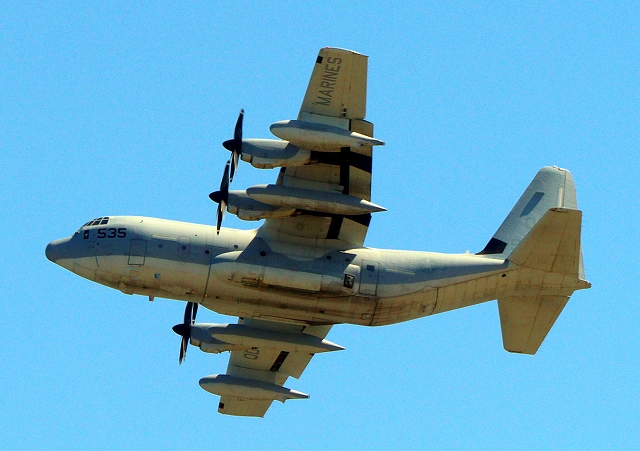 米海兵隊 KC-130J 空中給油機 スーパーハーキュリーズ(岩国基地)、QD 9535番機 |