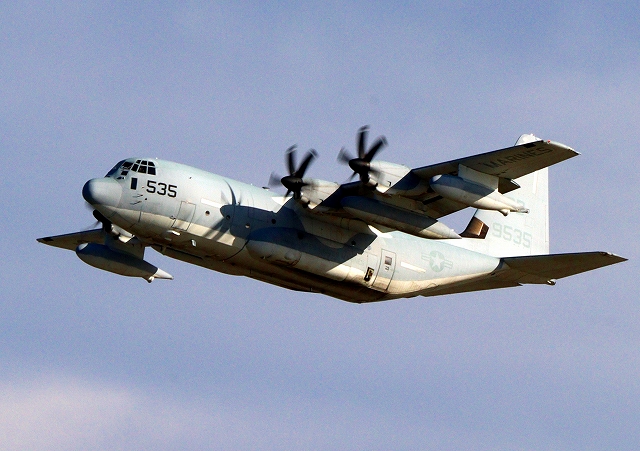 米海兵隊 KC-130J 空中給油機 スーパーハーキュリーズ(岩国基地)、QD 9535番機 |
