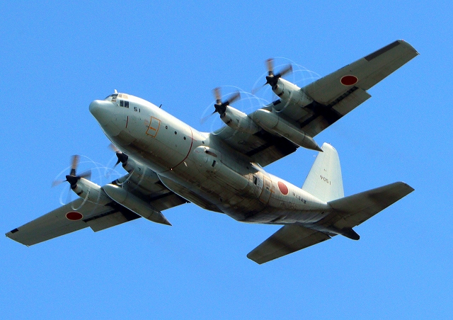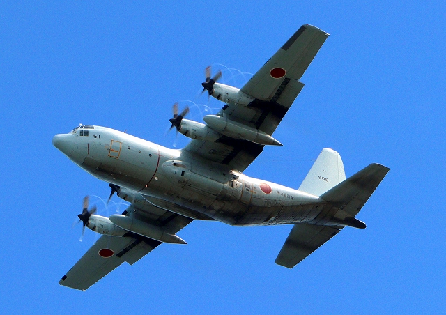 海上自衛隊 C-130R 輸送機 ハーキュリーズ(厚木基地)、9051番機が離陸 |