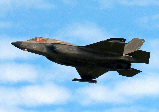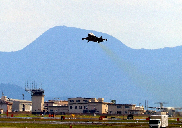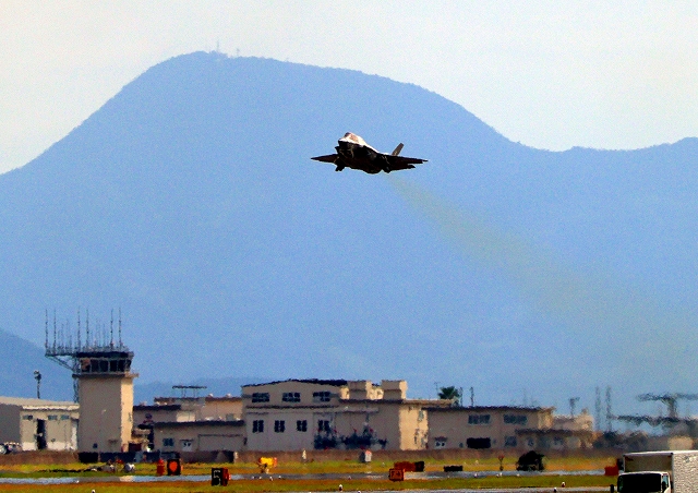 米海兵隊 F-35B ライトニングⅡ 戦闘機(岩国基地)、DT、21番機が離陸 |