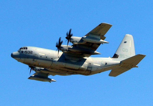 米海兵隊 KC-130J 空中給油機 スーパーハーキュリーズ(岩国基地)、QD 9532番機 |