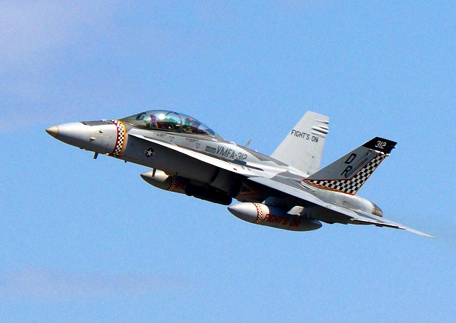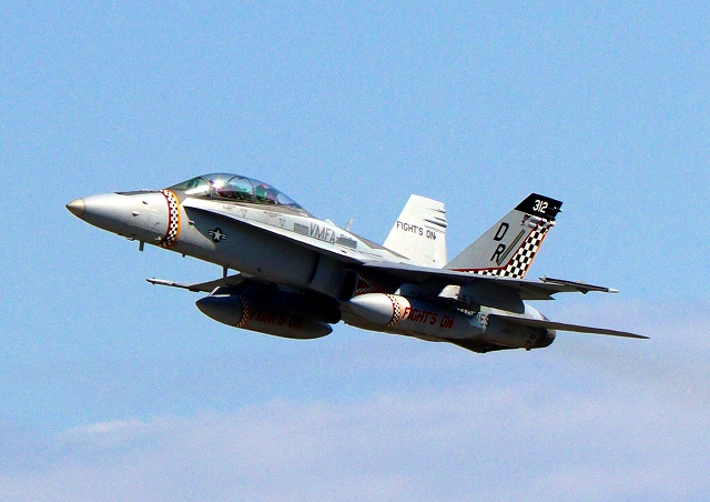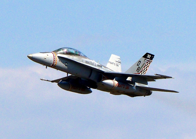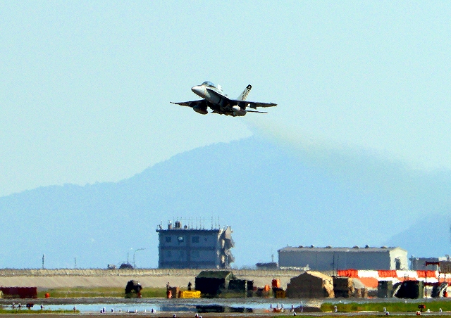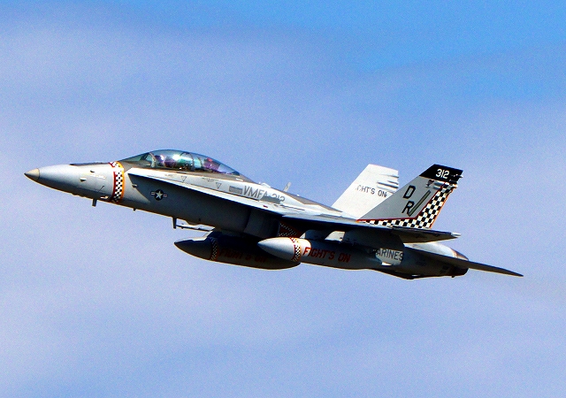 米海兵隊 F/A-18D ホーネット 戦闘攻撃機(岩国基地)、DR、312番機が離陸 |