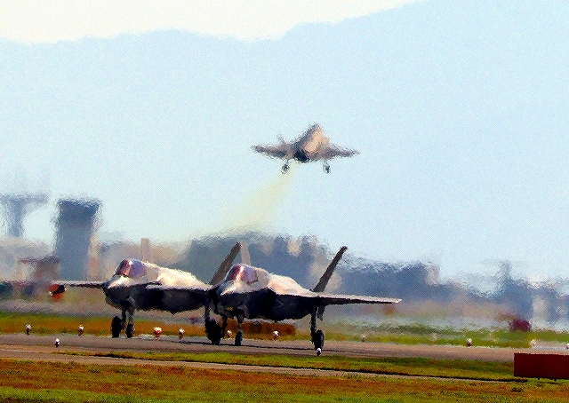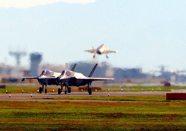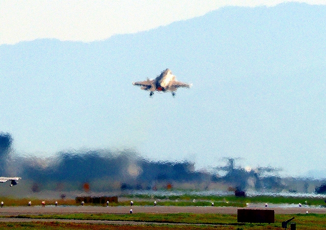 米海兵隊 F-35B ライトニングⅡ 戦闘機(岩国基地)、VK、02番機が離陸 |