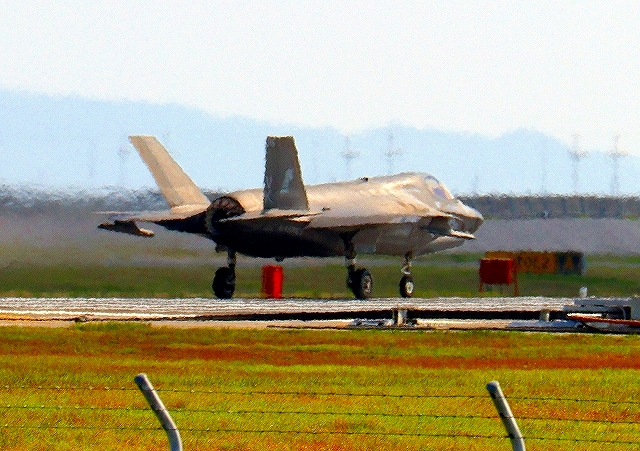 米海兵隊 F-35B ライトニングⅡ 戦闘機(岩国基地)、VK、10番機が離陸 |