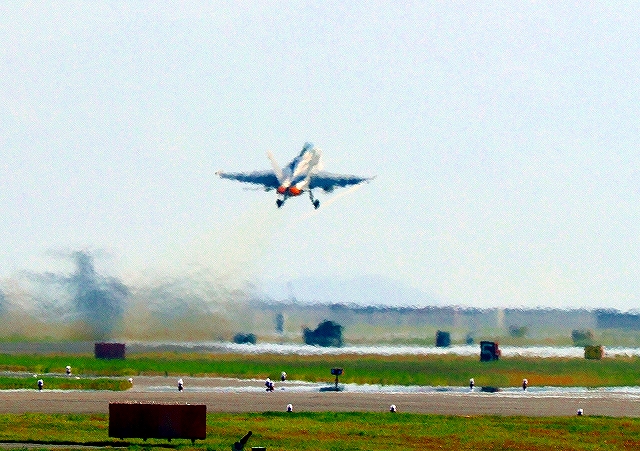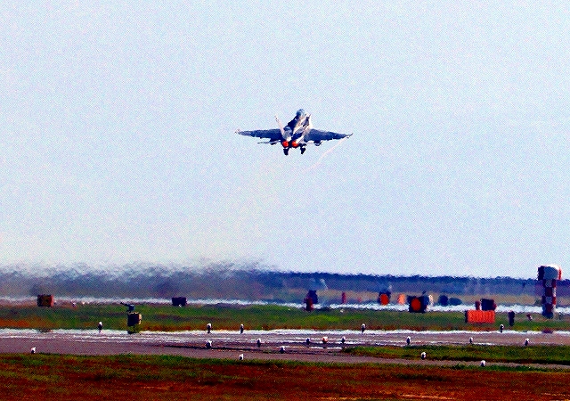 米海兵隊 F/A-18D ホーネット 戦闘攻撃機(岩国基地)、DR、702番機が離陸 |