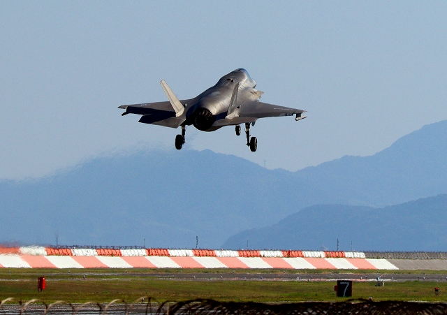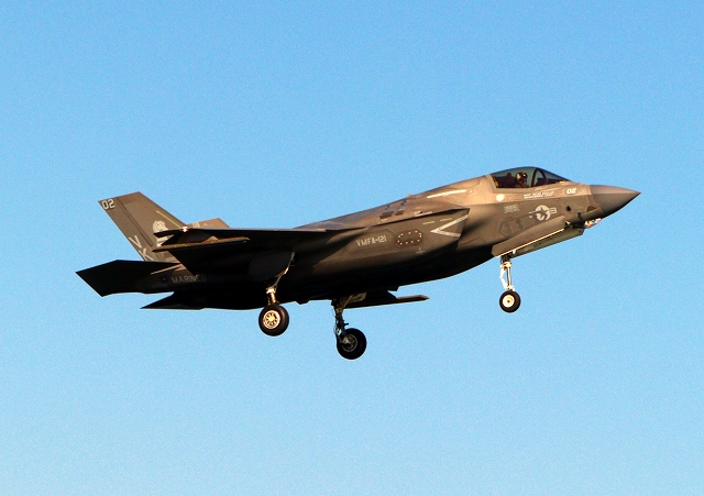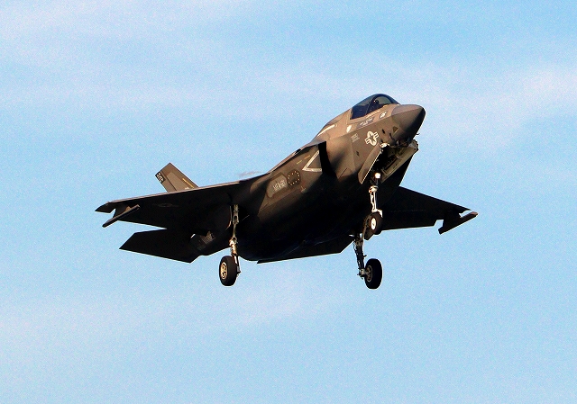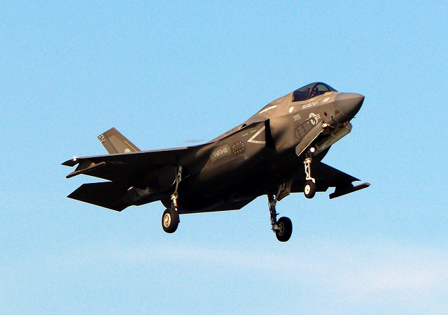 米海兵隊 F-35B ライトニングⅡ 戦闘機(岩国基地)、VK、02番機が着陸 |