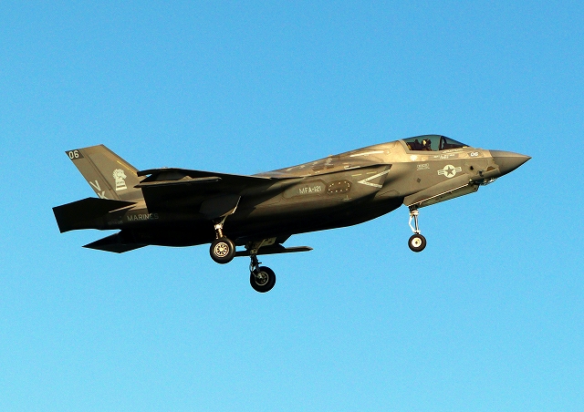 米海兵隊 F-35B ライトニングⅡ 戦闘機(岩国基地)、VK、06番機が着陸 |
