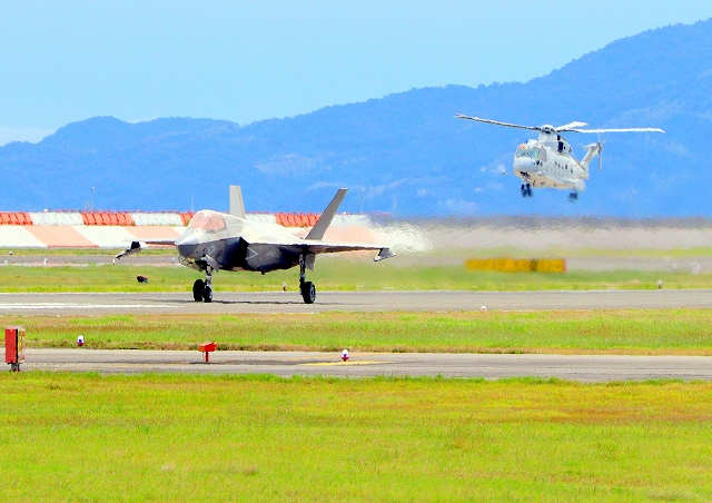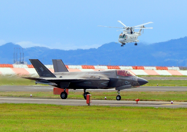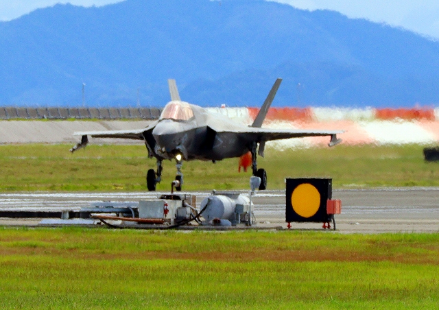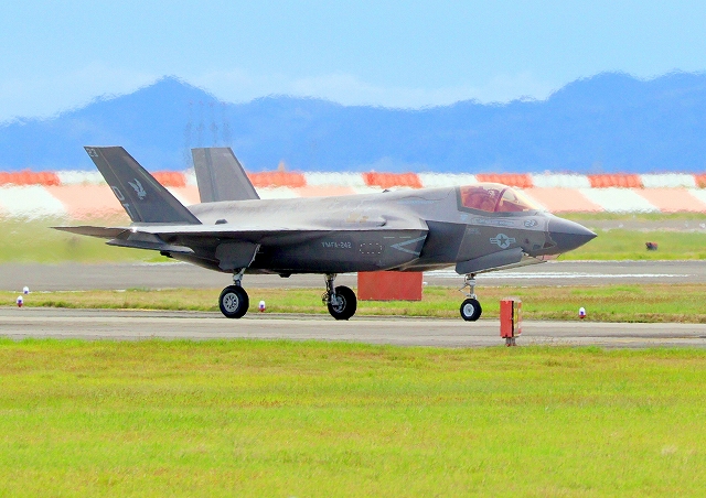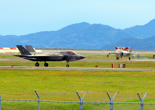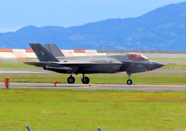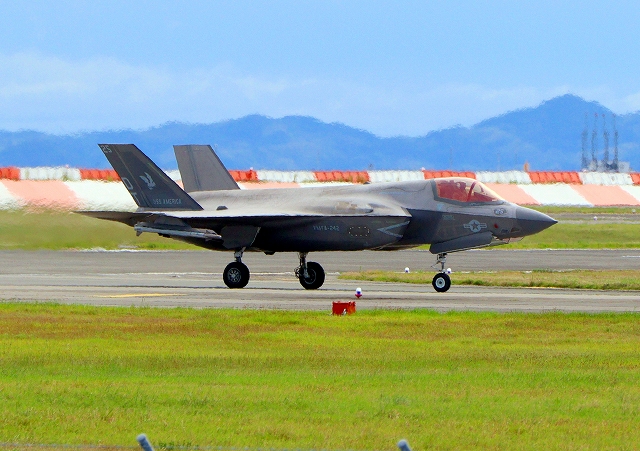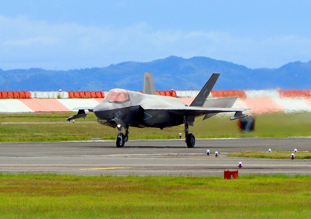 米海兵隊 F-35B ライトニングⅡ 戦闘機(岩国基地)、DT、21番機が着陸 |