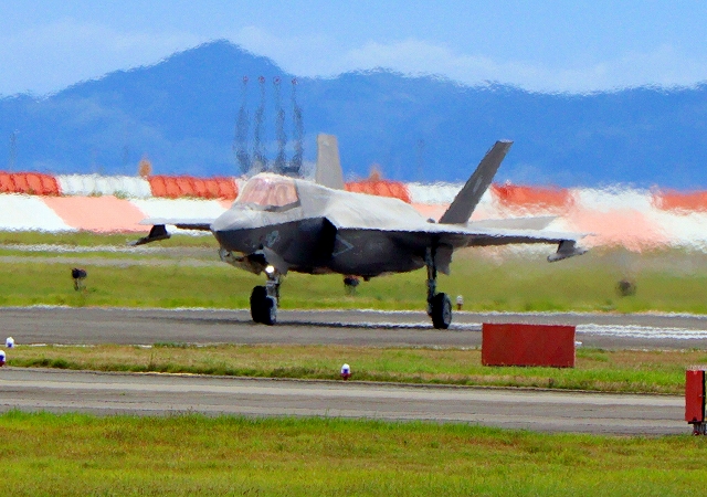 米海兵隊 F-35B ライトニングⅡ 戦闘機(岩国基地)、DT、25番機が着陸 |