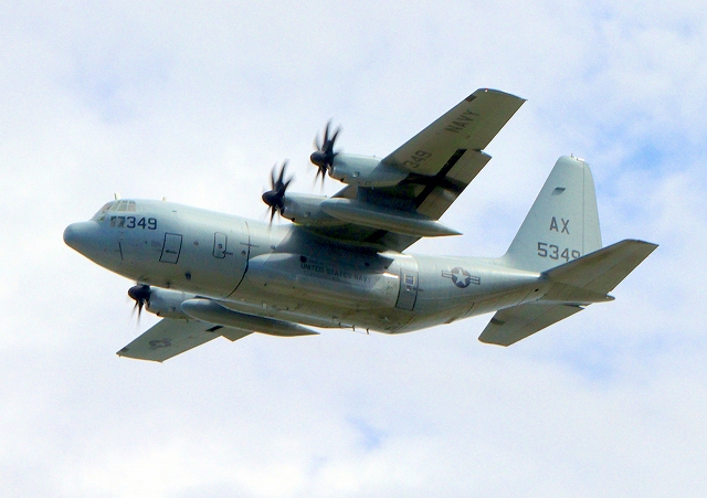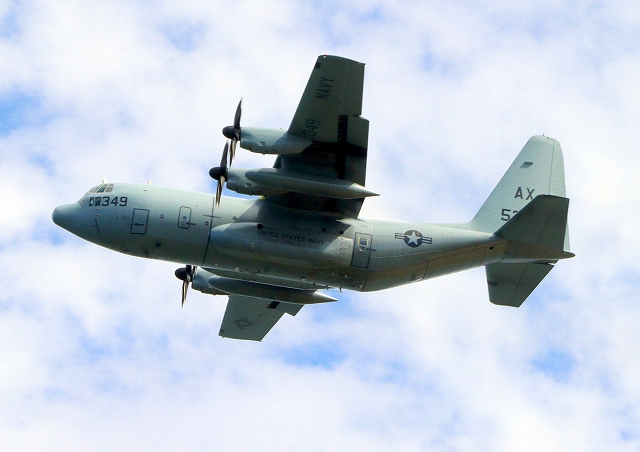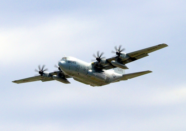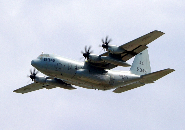 米海兵隊 KC-130J 空中給油機 スーパーハーキュリーズ(米本土海兵隊基地)、AX 5349番機が離陸 |