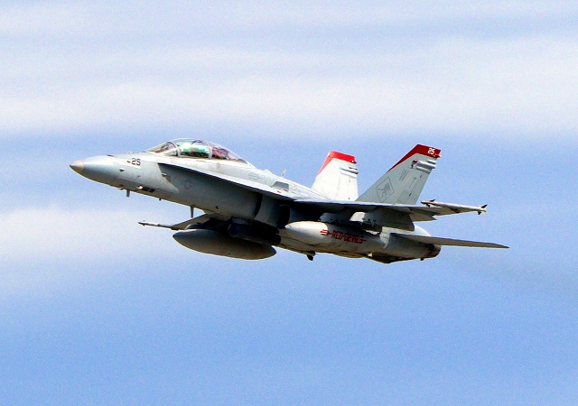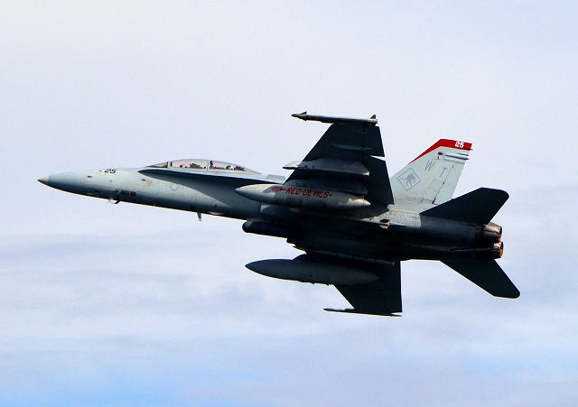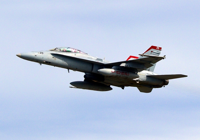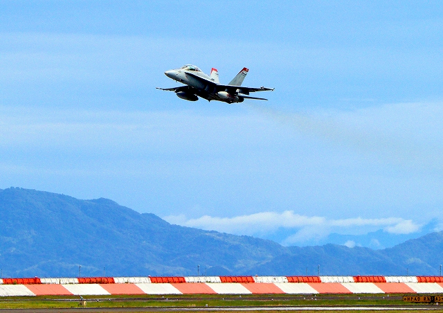 米海兵隊 F/A-18D ホーネット 戦闘攻撃機(岩国基地)、WT、25番機が離陸