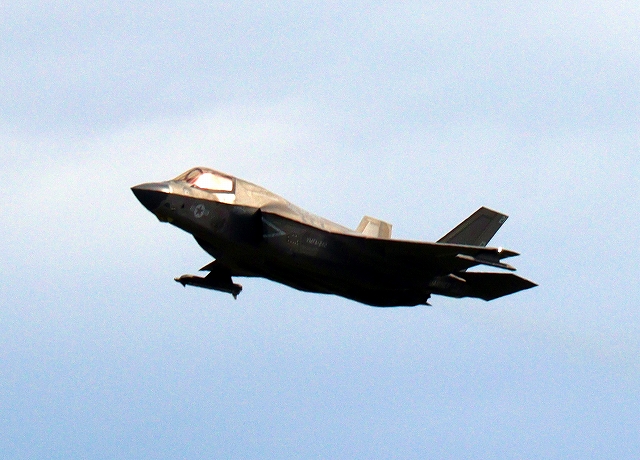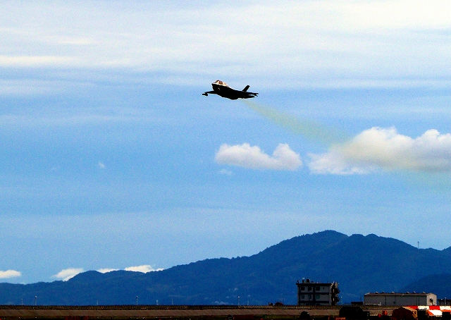 米海兵隊 F-35B ライトニングⅡ 戦闘機(岩国基地)、DT、21番機が離陸 |