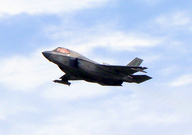 米海兵隊 F-35B ライトニングⅡ 戦闘機(岩国基地)、DT、27番機が離陸 |