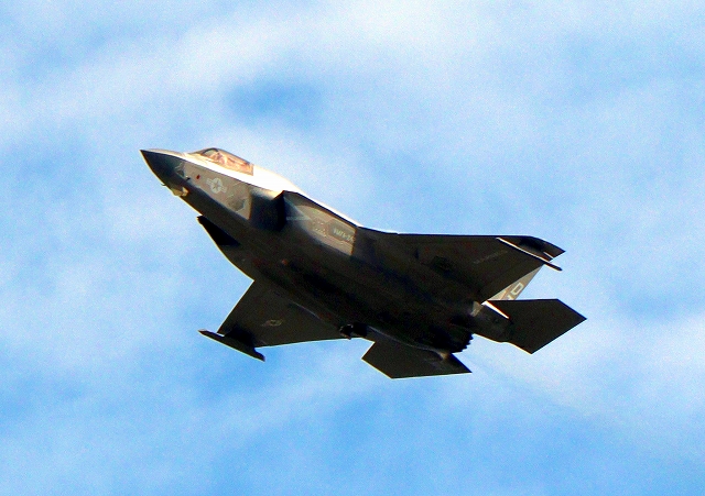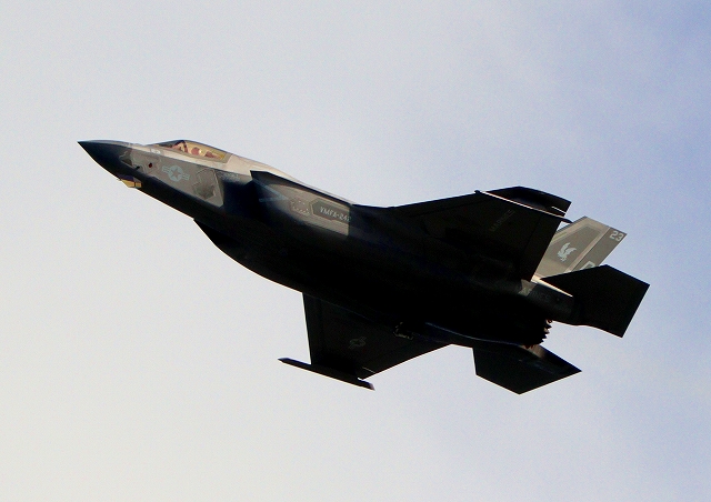 米海兵隊 F-35B ライトニングⅡ 戦闘機(岩国基地)、DT、23番機が離陸 |