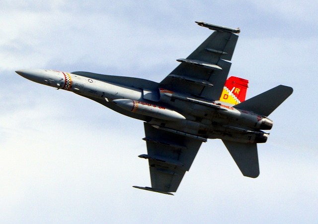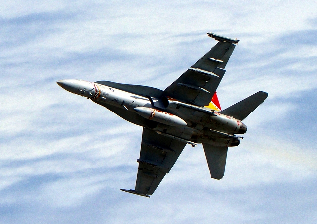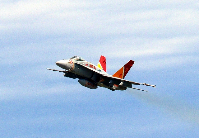 米海兵隊 F/A-18C ホーネット 戦闘攻撃機(岩国基地)、DR、312番機が離陸 |