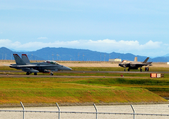 米海兵隊 F/A-18D ホーネット 戦闘攻撃機(岩国基地)、WT、25番機、米海兵隊 F-35B ライトニングⅡ 戦闘機(岩国基地)、DT、21番機 |