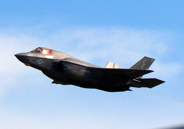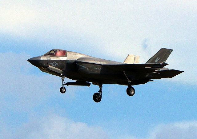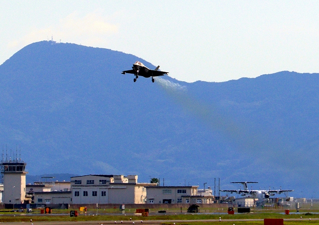米海兵隊 F-35B ライトニングⅡ 戦闘機(岩国基地)、DT、32番機が離陸 |
