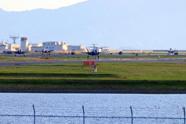 米海兵隊 F-35B ライトニングⅡ 戦闘機(岩国基地)、CE、01番機、07番機、DT、32番機、23番機が着陸 |