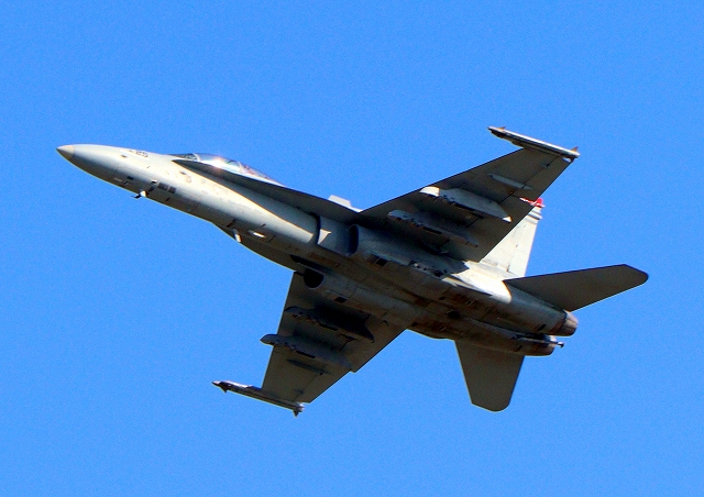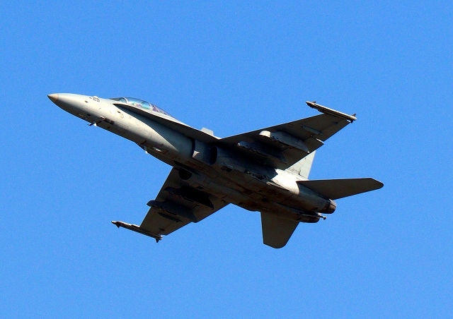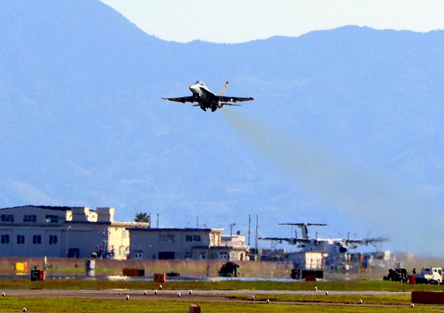 米海兵隊 F/A-18D ホーネット 戦闘攻撃機(岩国基地)、DR、702番機が離陸 |