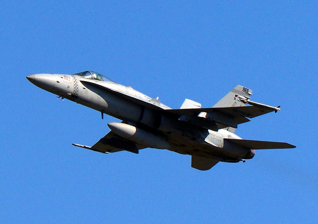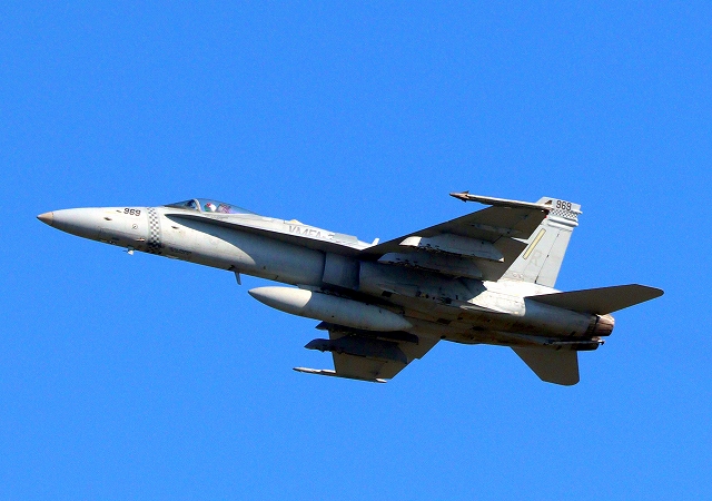 米海兵隊 F/A-18C ホーネット 戦闘攻撃機(岩国基地)、DR、969番機が離陸 |