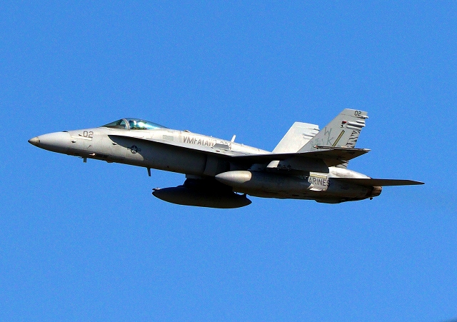 米海兵隊 F/A-18C ホーネット 戦闘攻撃機(岩国基地)、WK、02番機が離陸 |