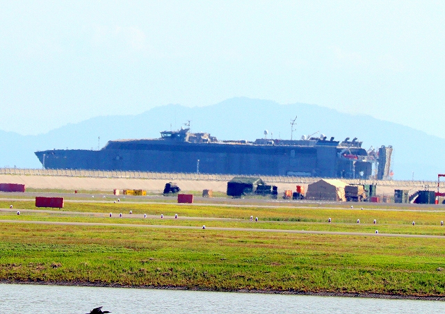 今津川堤防道路に戻って米海軍 高速輸送船 グアムをまた撮ってサヨナラ。 |