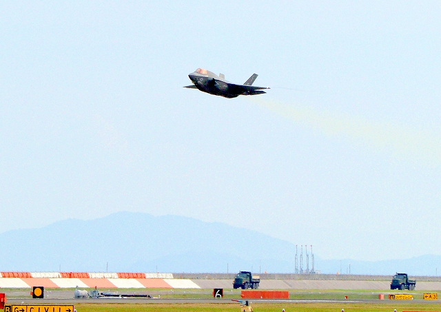 米海兵隊 F-35B ライトニングⅡ 戦闘機(岩国基地)、CE、05番機が離陸 |