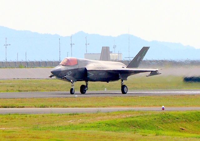 米海兵隊 F-35B ライトニングⅡ 戦闘機(岩国基地)、DT、27番機が着陸 |