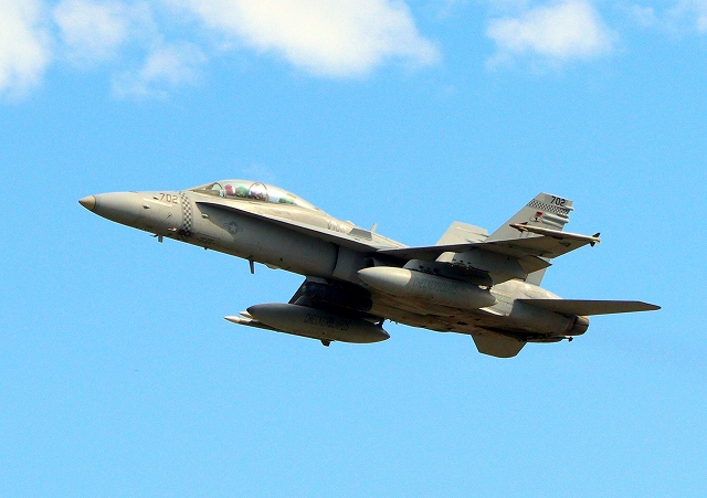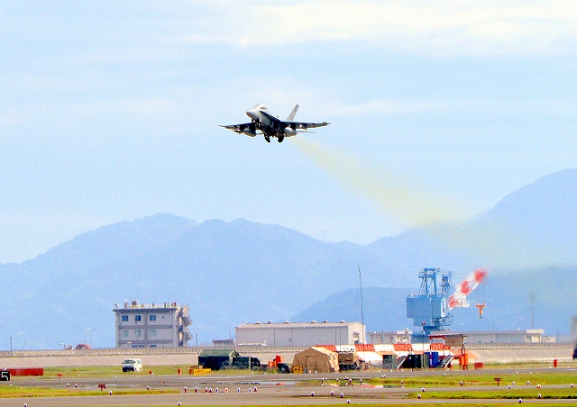 米海兵隊 F/A-18D ホーネット 戦闘攻撃機(岩国基地)、DR、702番機が離陸