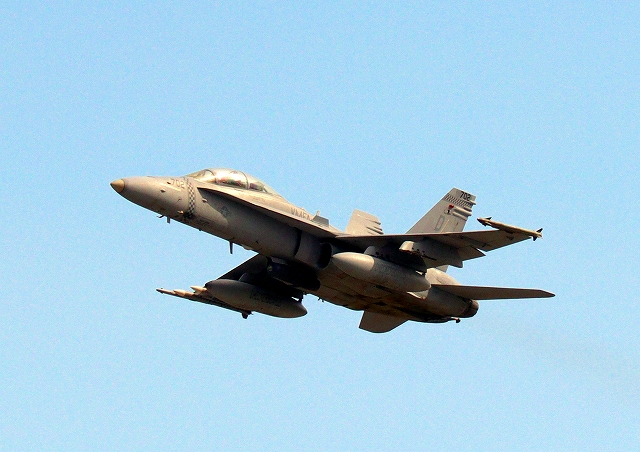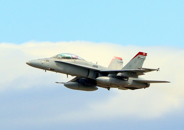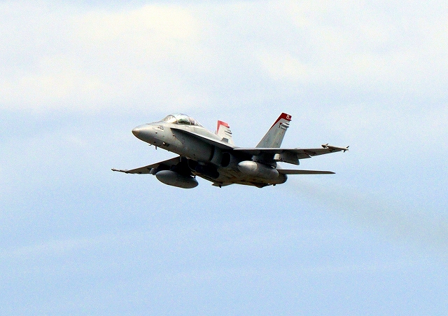 米海兵隊 F/A-18D ホーネット 戦闘攻撃機(岩国基地)、WT、25番機が離陸 |