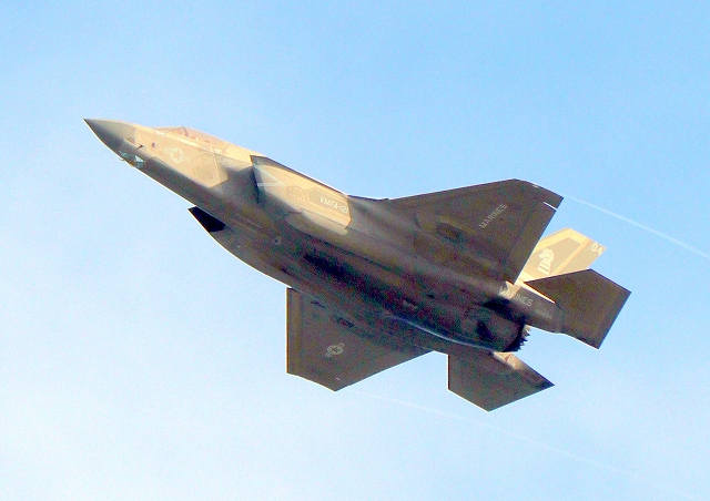 米海兵隊 F-35B ライトニングⅡ 戦闘機(岩国基地)、VK、04番機が離陸 |