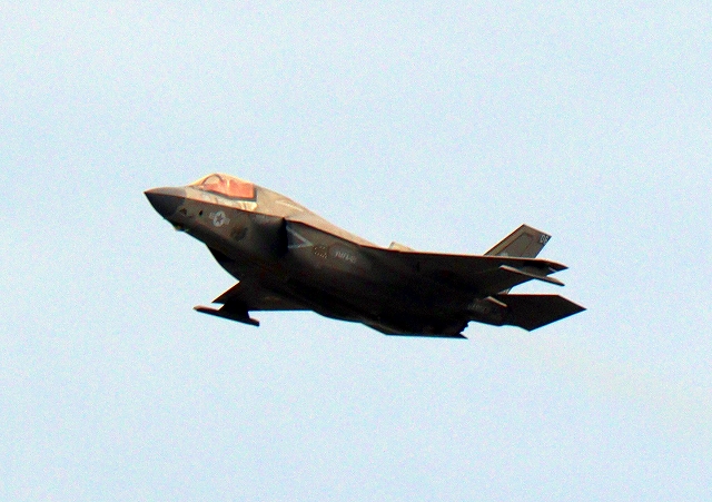 米海兵隊 F-35B ライトニングⅡ 戦闘機(岩国基地)、DT、25番機が離陸 |