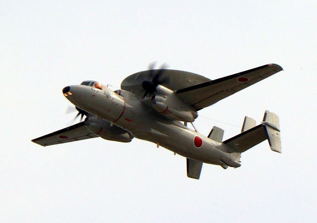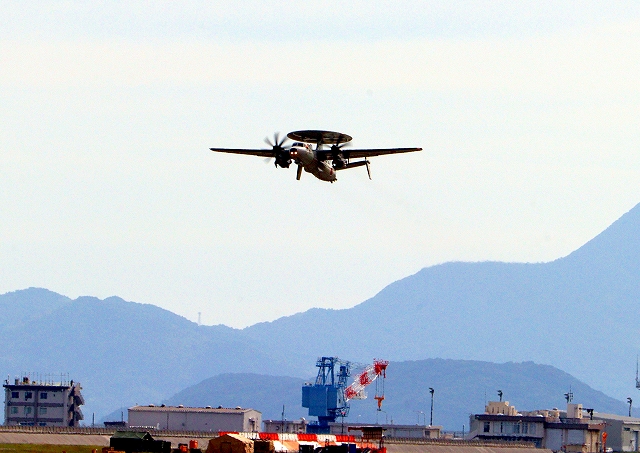航空自衛隊 E-2D アドヴァンスド・ホークアイ 早期警戒機(三沢基地)、41-3477番機が離陸 |