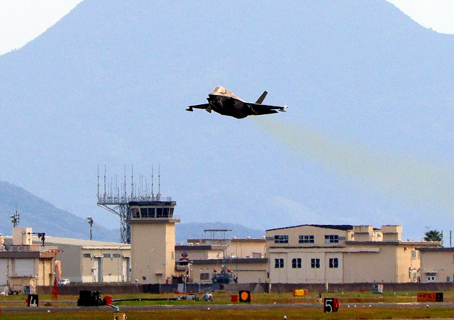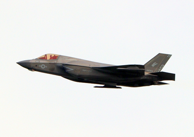 米海兵隊 F-35B ライトニングⅡ 戦闘機(岩国基地)、DT、25番機が離陸 |