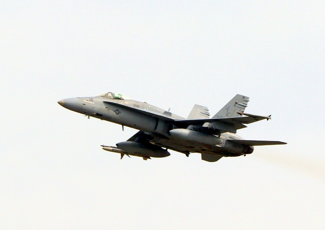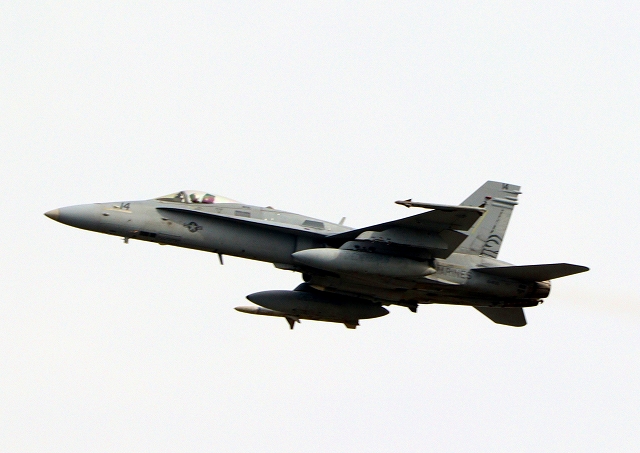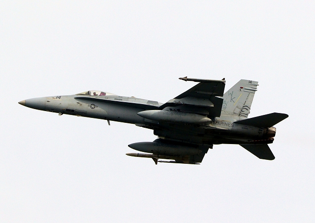 米海兵隊 F/A-18C ホーネット 戦闘攻撃機(岩国基地)、WK、14番機が離陸 |