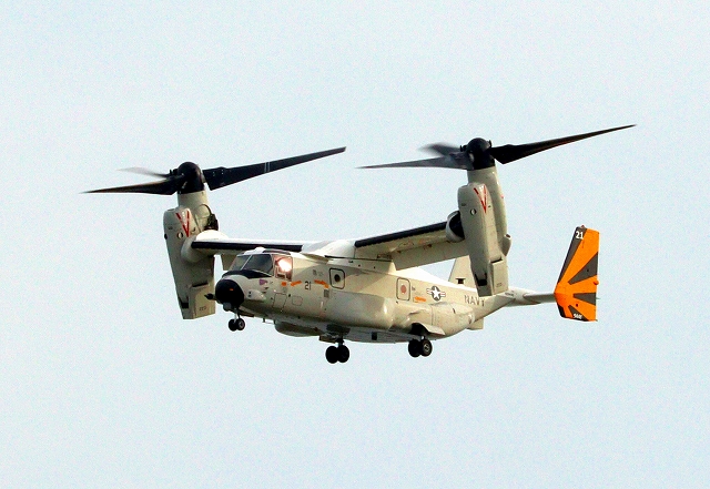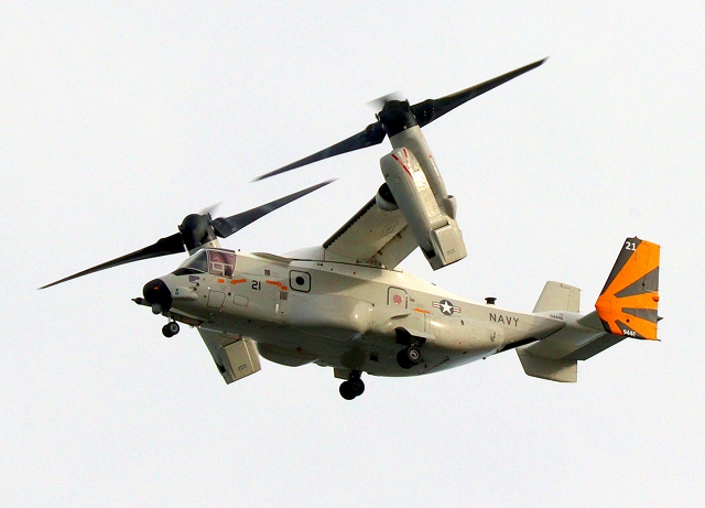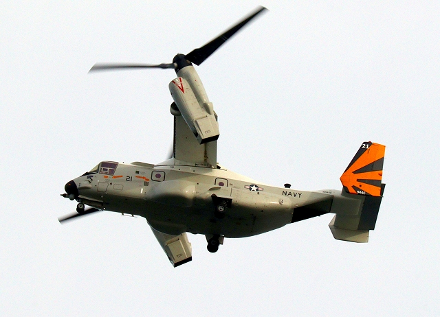 米海軍艦載機 CMV-22B オスプレイ、21ー9446番機(航空母艦 カール・ヴィンソン搭載の機)が離陸 |