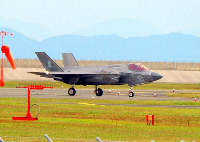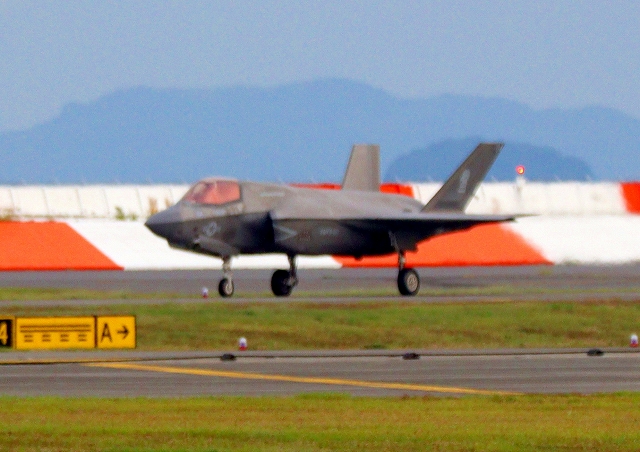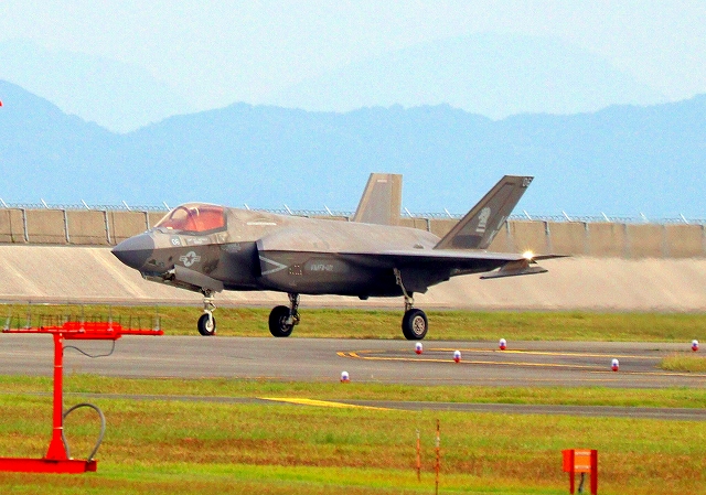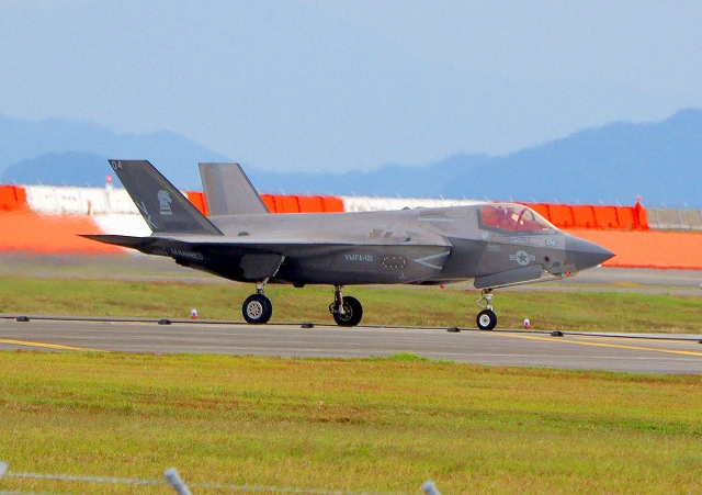 米海兵隊 F-35B ライトニングⅡ 戦闘機(岩国基地)、VK、06番機が着陸 |