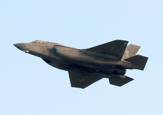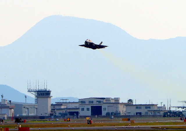 米海兵隊 F-35B ライトニングⅡ 戦闘機(岩国基地)、VK、12.1番機が離陸 |