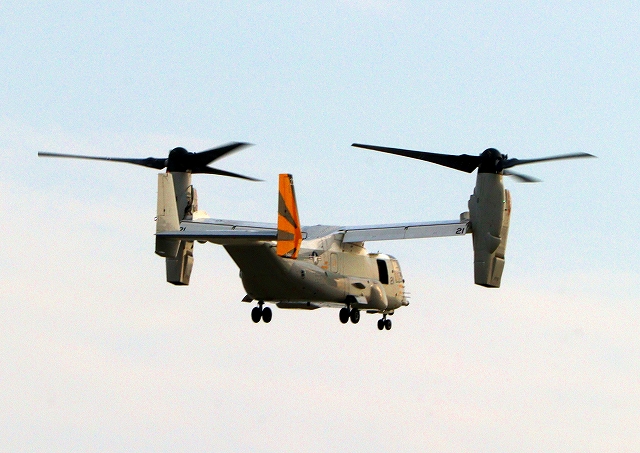 米海軍艦載機 CMV-22B オスプレイ、21-5446番機(航空母艦 カール・ヴィンソン搭載の機)が米空軍嘉手納基地から帰還 |