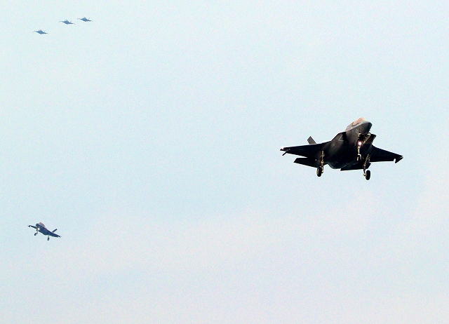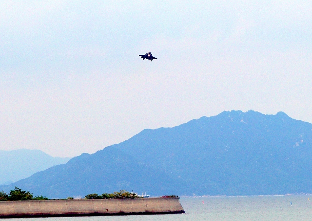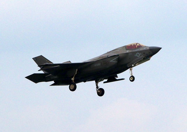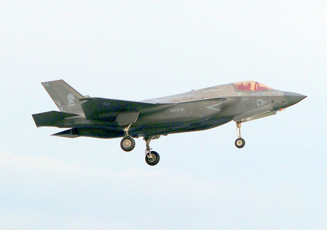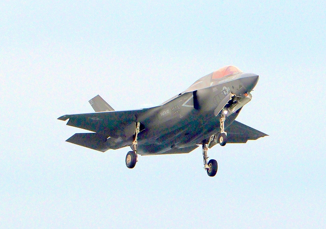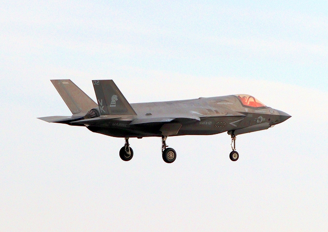 米海兵隊 F-35B ライトニングⅡ 戦闘機(岩国基地)、VK、02番機が着陸 |