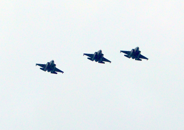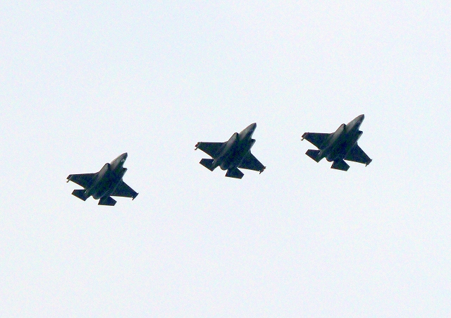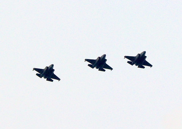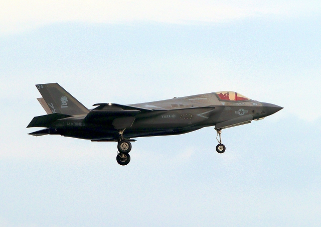 米海兵隊 F-35B ライトニングⅡ 戦闘機(岩国基地)、DT、27番機、30番機、31番機が3機編隊で帰還 |