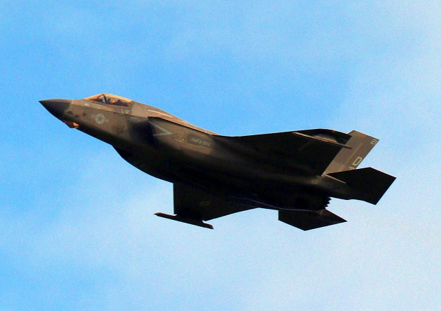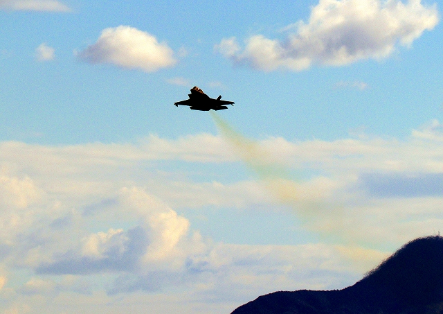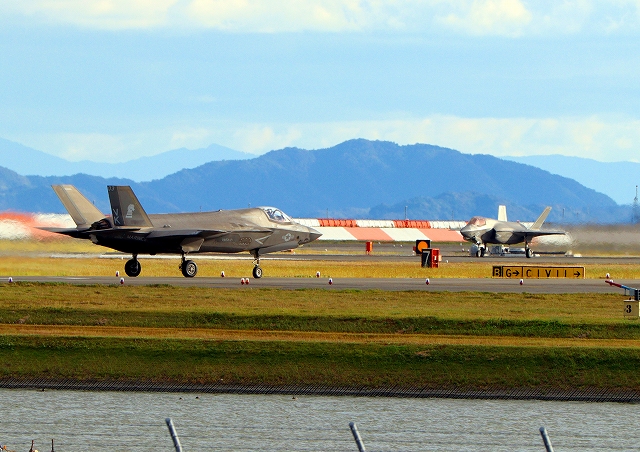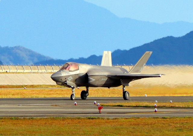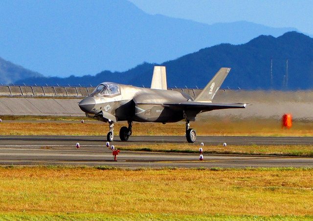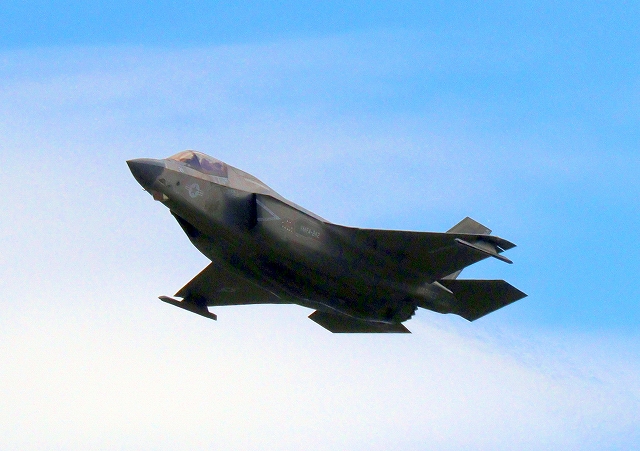 米海兵隊 F-35B ライトニングⅡ 戦闘機(岩国基地)、DT、21番機が離陸 |