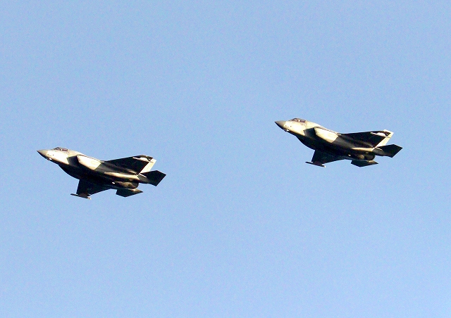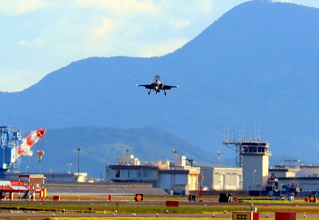 米海兵隊 F-35B ライトニングⅡ 戦闘機(岩国基地)、DT、27番機、21番機が2機編隊で帰還