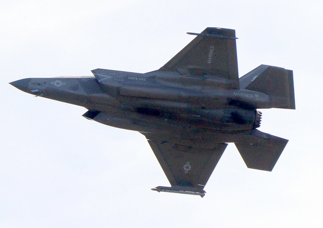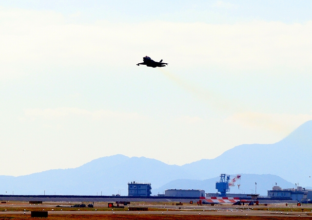 米海兵隊 F-35B ライトニングⅡ 戦闘機(岩国基地)、DT、27番機が離陸 |