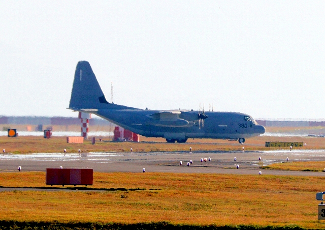 米海兵隊 KC-130J 空中給油機 スーパーハーキュリーズ(岩国基地)、QD 6380番機が着陸 |
