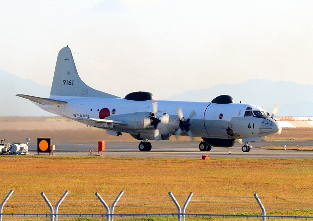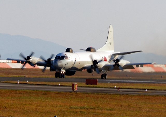 海上自衛隊 UP-3D 電子戦訓練支援機(岩国基地)、9161番機が着陸 |
