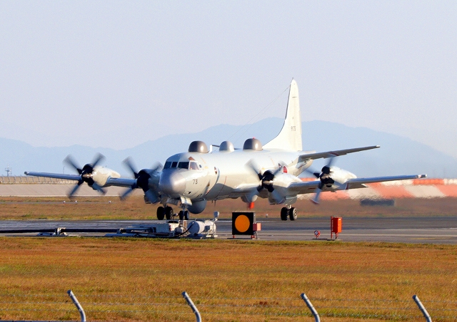 海上自衛隊 EP-3 電子戦データ収集機(岩国基地)、9173番機が着陸 |